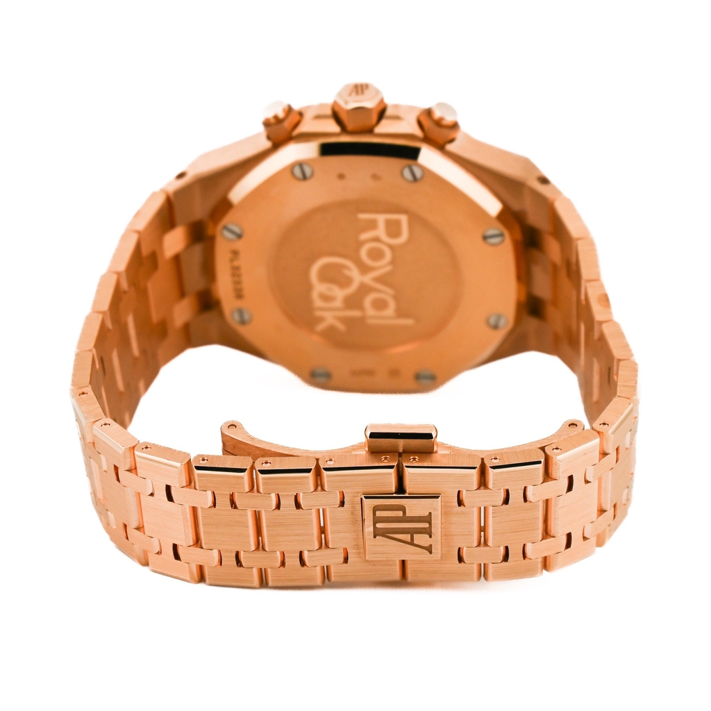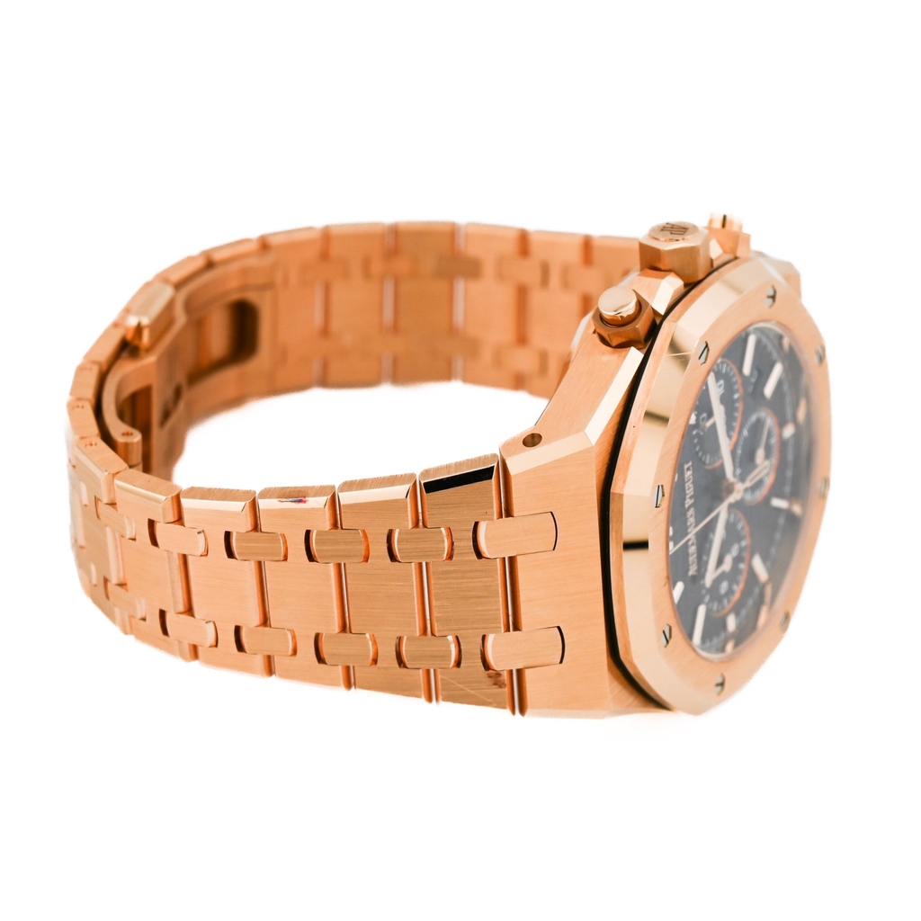 型番:26715OR.OO.1356OR.01シリーズ名:ロイヤルオーク クロノグラフサイズ:38mmムーブメント:自動巻き素材:18Kピンクゴールド文字盤:ブルー仕様:クロノグラフ 日付表示風防:サファイアガラス防水性:50 m防水