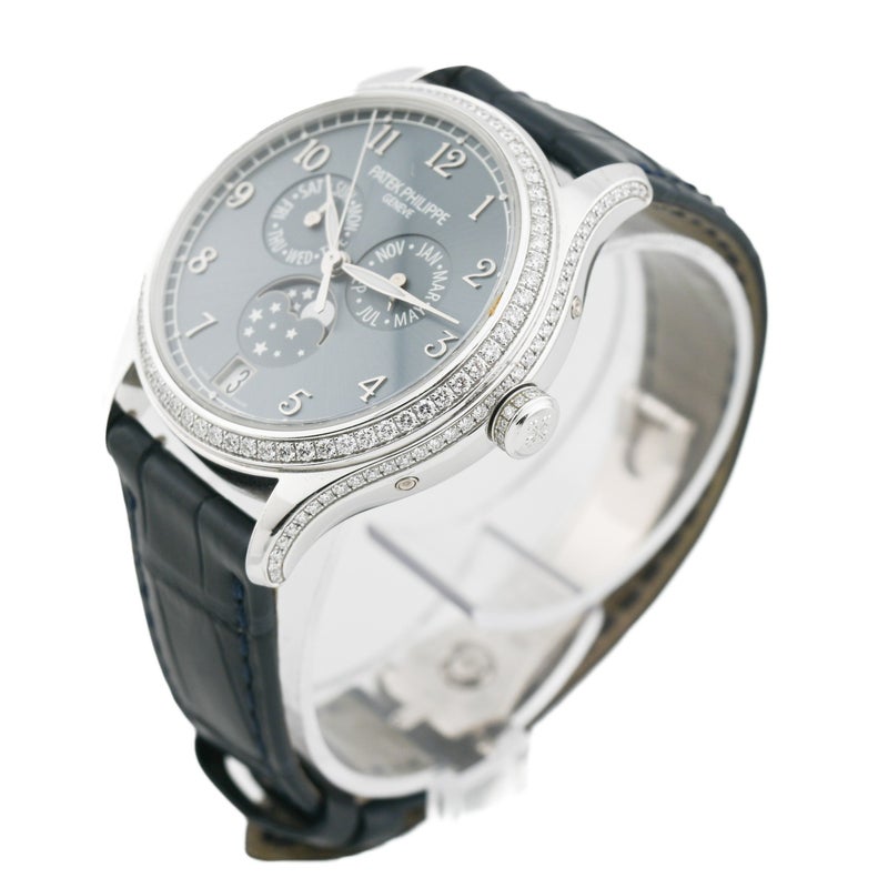 型番:4947G-001ケース:K18ホワイトゴールド/ダイヤモンドべゼル:-風防:サファイアクリスタルガラスケースサイズ:38.0mm文字盤:ブルーソレイユムーブメント:自動巻き仕様:-防水性:3気圧防水ブレスレット:-年式:2017年