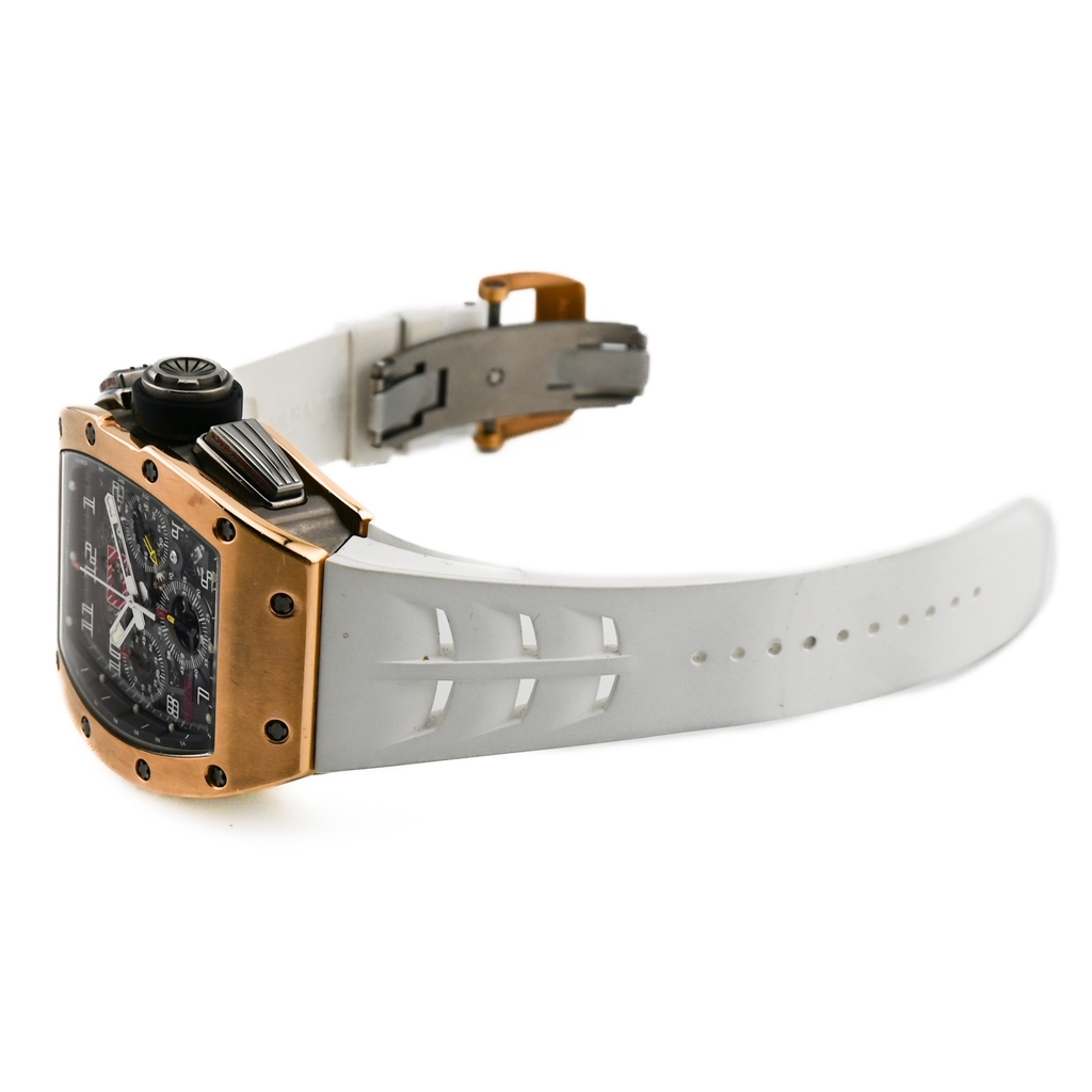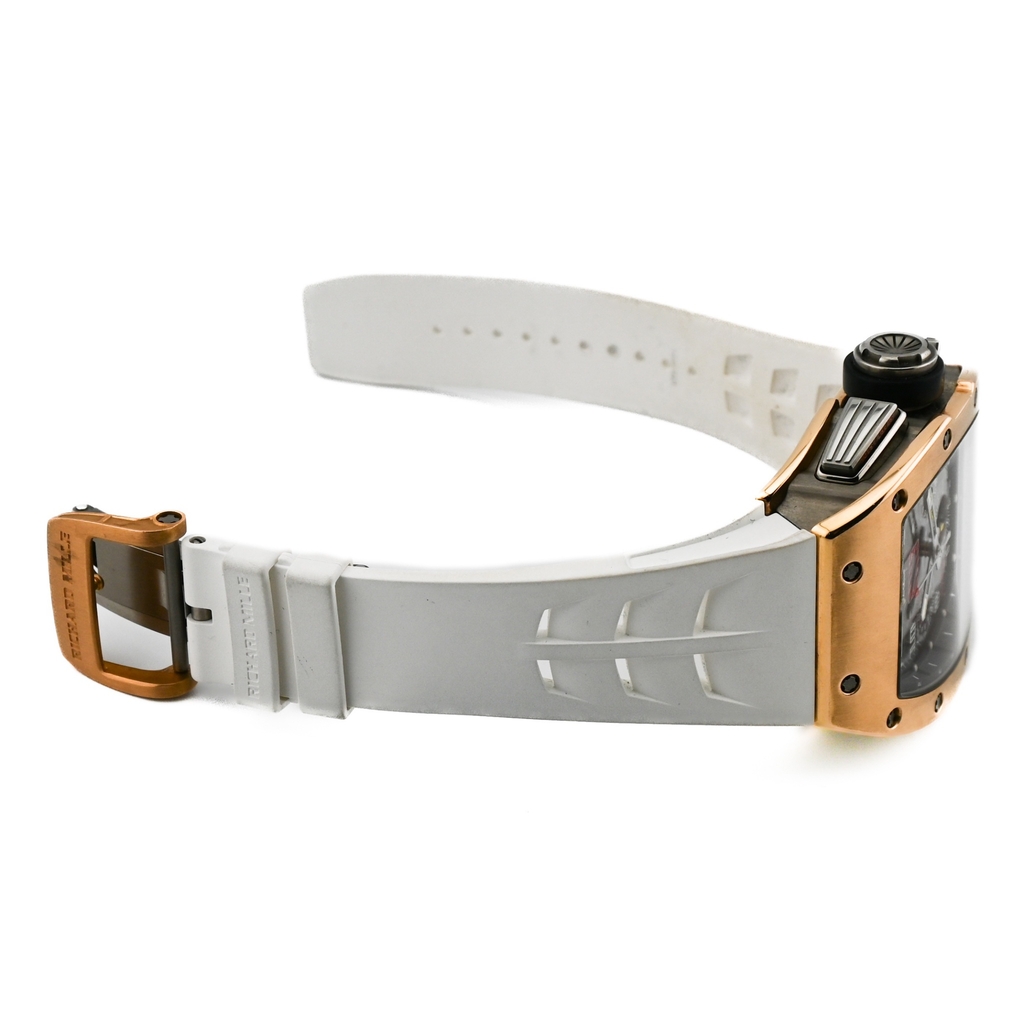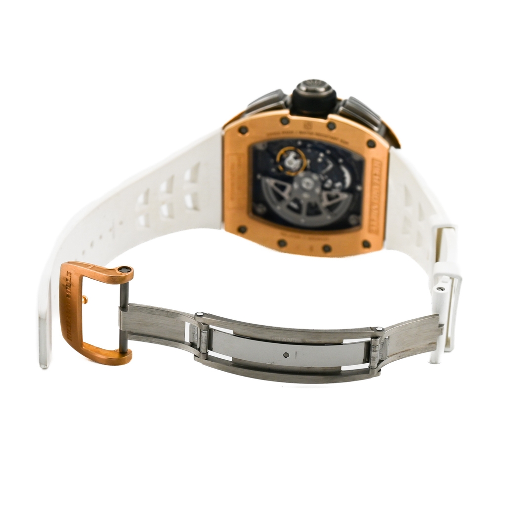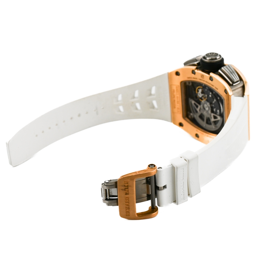 型番:RM011-FMサイズ:50.0mmムーブメント:自動巻き素材:K18ローズゴールド文字盤:スケルトン仕様:時・分・スモールセコンド、日付表示防水性:50m防水