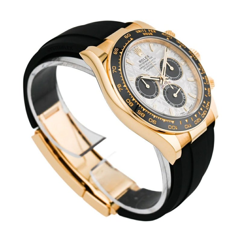 型番:126518LNサイズ:40.0mmムーブメント:自動巻き素材:イエローゴールド文字盤:メテオライト仕様:防水(100m) クロノグラフ サファイアガラス風防: サファイアガラス防水性:防水(100m)